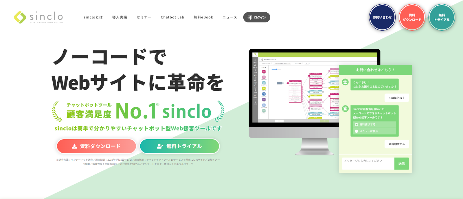 sincloは、サイト上での接客やリード獲得に強みを持つ顧客対応型チャットツールです。訪問者の閲覧ページや滞在時間に応じて、自動で話しかけるオートメッセージ機能を備えており、興味関心が高まったタイミングで資料請求や問い合わせへ自然に誘導できます。