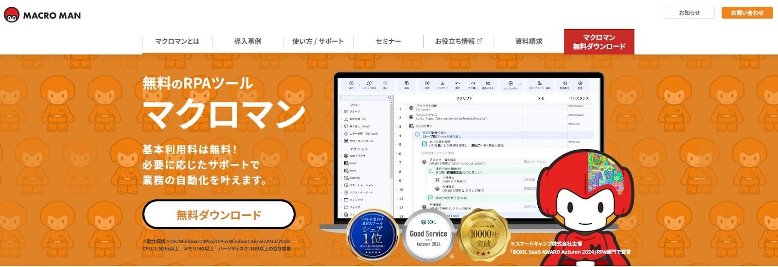 RPA Robo-Pat DXの特徴は、無料で充実したサポートを受けられる点です。また、2泊3日限定でフル機能版を安く利用できる方法もあるため、短期間での使用を検討している場合にも役立ちます。