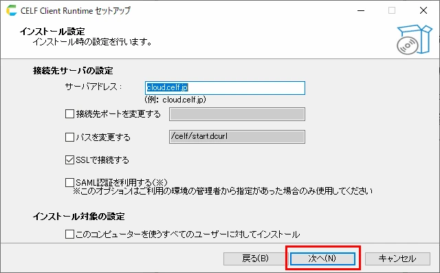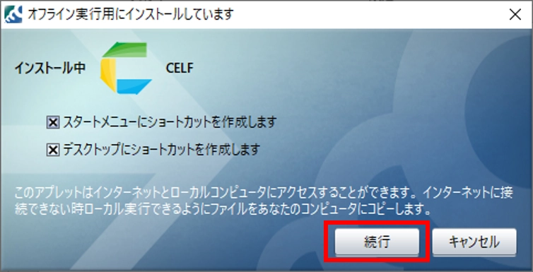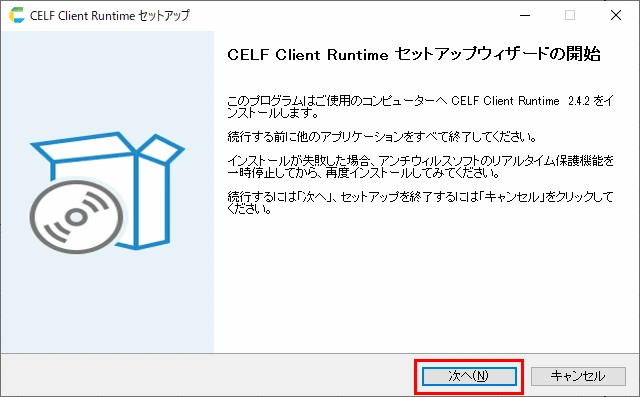 2. ダウンロードしたCELF インストーラ(CELF_Setup-cloud.exe)を実行してください。