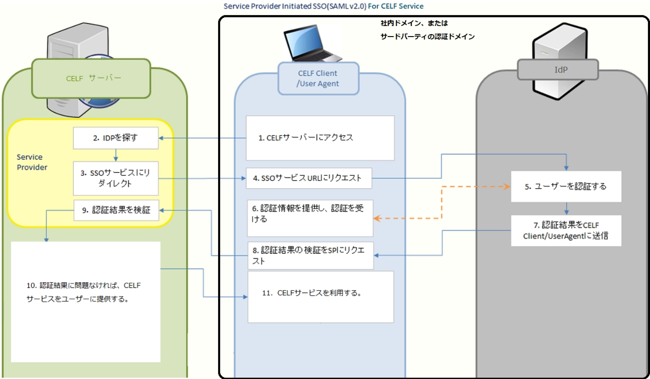 以下はCELFオンプレミス版でSAML認証を利用する場合の連携イメージです。